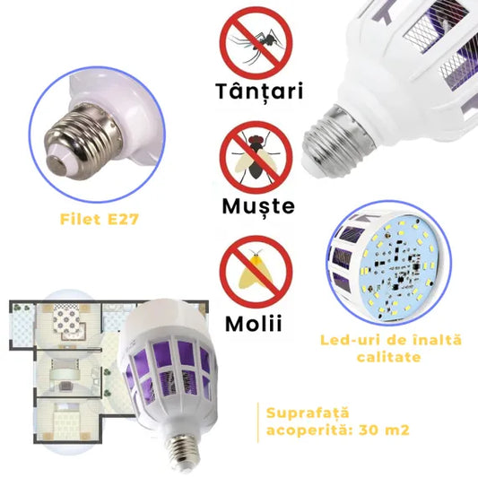 Bec LED 2 in 1 cu lampa UV ANTI Insecte | NoBzzz