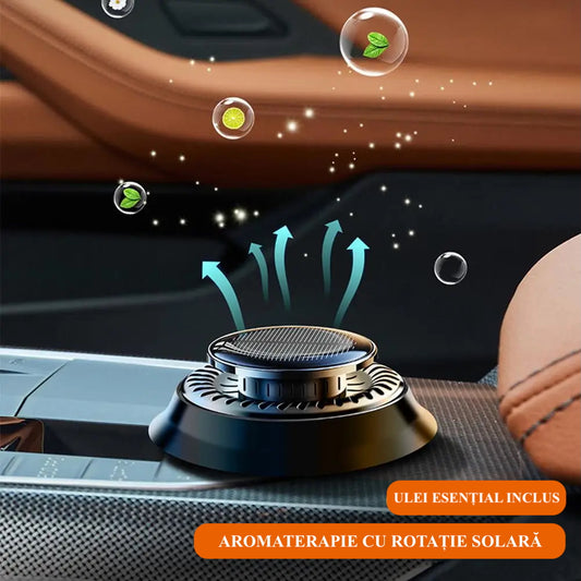 Odorizant Auto Premium cu Lumină Solară – Design Lux cu 2 Uleiuri Esențiale Incluse